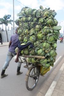 ‘Goma is onveilig,’ zegt Aimée wanneer we een goed heenkomen hebben gezocht. ‘De Congolezen durven niet naar hun akkers te gaan.’ Dat verklaart waarom ze zoveel basisvoedsel uit het piepkleine buurland importeren. Omgekeerd blijken Congolese stoffen, schoenen en bakbananen het in Rwanda goed te toen. Mondjesmaat toegelaten, dat wel.
