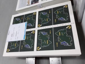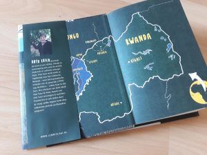 En dan komt de verrassing. Op een gladde tafel ligt een plattegrond van Rwanda. Daarachter zie ik hetzelfde beeld in viervoud op een computerscherm. Dit komt voorin mijn boek! Ik wist niet dat de plattegrond ook vandaag zou worden gedrukt.