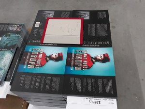Dat deze drukkerij geen kleintje is, zie ik ook aan de boeken. Een stapel covers van Grand hotel Europa,[2] een taalboek van Paulien Cornelisse, en De zeven zussen van Lucinda Riley. Het lijkt alsof de hele wereld hier zijn drukwerk laat doen.